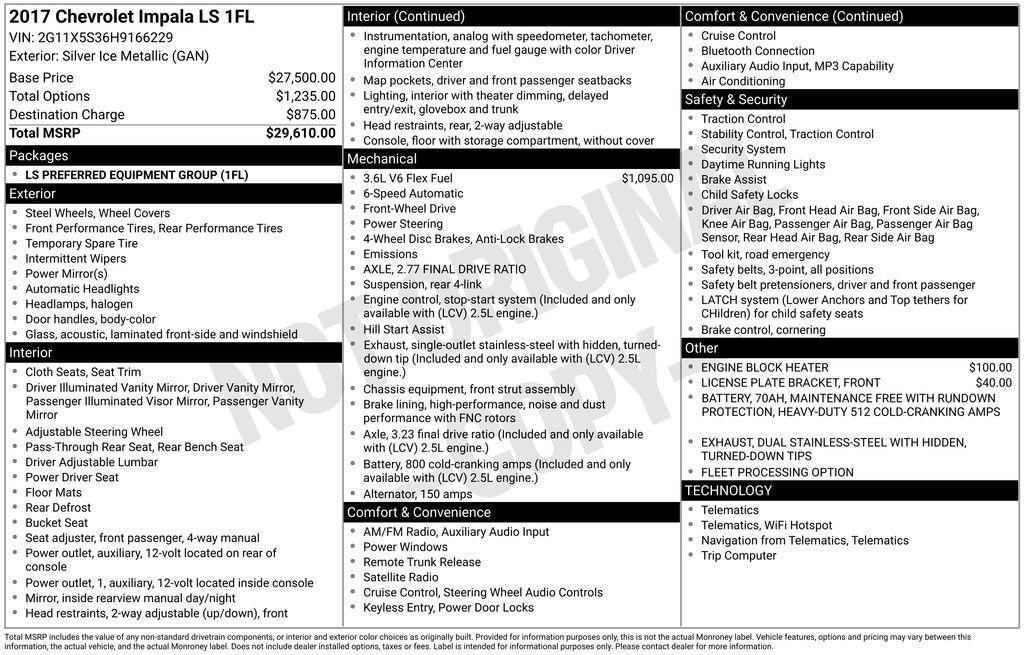 Discover the exceptional value and versatility of this 2017 Chevrolet Impala LS 1FL. With its sleek silver exterior, powerful 3.6L V6 engine, and an impressive array of features, this Impala is poised to exceed your expectations.