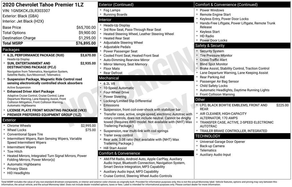 Elevate your driving experience with this exceptional 2020 Chevrolet Tahoe Premier. This full-size SUV is a true powerhouse, engineered to deliver uncompromising performance and unparalleled capabilities.Boasting a robust 6.2L EcoTec3 V8 engine and a 10-speed automatic transmission, this Tahoe Premier offers a thrilling blend of power and efficiency. Equipped with the 6.2L Performance Package, it delivers an exhilarating driving experience, thanks to features like the high-capacity air cleaner, 170-amp alternator, and 2-speed active transfer case.• 6.2L Performance Package• Sun, Entertainment & Destinations Package• Black Bowtie Emblems (LPO)• Wheel Locks (LPO)• Navigation System• Enhanced Driver Alert Package• Magnetic Ride Control Suspension Package• Bose Centerpoint Premium 10-Speaker Surround Sound• Hands Free Power Liftgate• Head-Up Display• Power Sunroof• Power Liftgate• Wireless Charging• Heated & Ventilated Driver & Front Passenger Seats• Heated 2nd Row Outboard SeatsStep inside and be captivated by the Tahoe Premier's premium cabin, featuring perforated leather-appointed seating, heated and ventilated front seats, and a host of advanced technology. The 8-inch diagonal color touch-screen navigation system with Chevrolet Infotainment keeps you connected and entertained, while the Bose Centerpoint Premium 10-speaker surround sound system delivers an immersive audio experience.Designed with your comfort and convenience in mind, the Tahoe Premier offers a wealth of features, including a power liftgate, wireless charging, and a head-up display that projects vital information directly into your line of sight. The Magnetic Ride Control suspension provides a smooth and responsive ride, while the Enhanced Driver Alert Package keeps you safe with advanced safety technologies like Forward Collision Alert and Lane Keep Assist.Whether you're embarking on a family adventure or tackling your daily commute, this 2020 Chevrolet Tahoe Premier is the ultimate companion. Experience the power, luxury, and versatility that this exceptional SUV has to offer. Schedule a test drive today and discover why the Tahoe Premier is the perfect choice for your next vehicle.*OUR PRE-OWNED VEHICLES ARE FULLY RECONDITIONED. CALL TO SEE WHAT WORK WAS DONE TO THIS VEHICLE** *PROUDLY SERVING THE BRAINERD, GRAND RAPIDS, DULUTH AND SURROUND AREAS!*