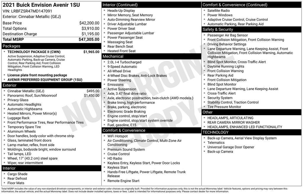 Elevate your driving experience with the premium amenities and advanced technologies of the 2021 Buick Envision Avenir. This exceptional SUV is waiting to take you on unforgettable journeys. Schedule a test drive today and discover the difference for yourself.