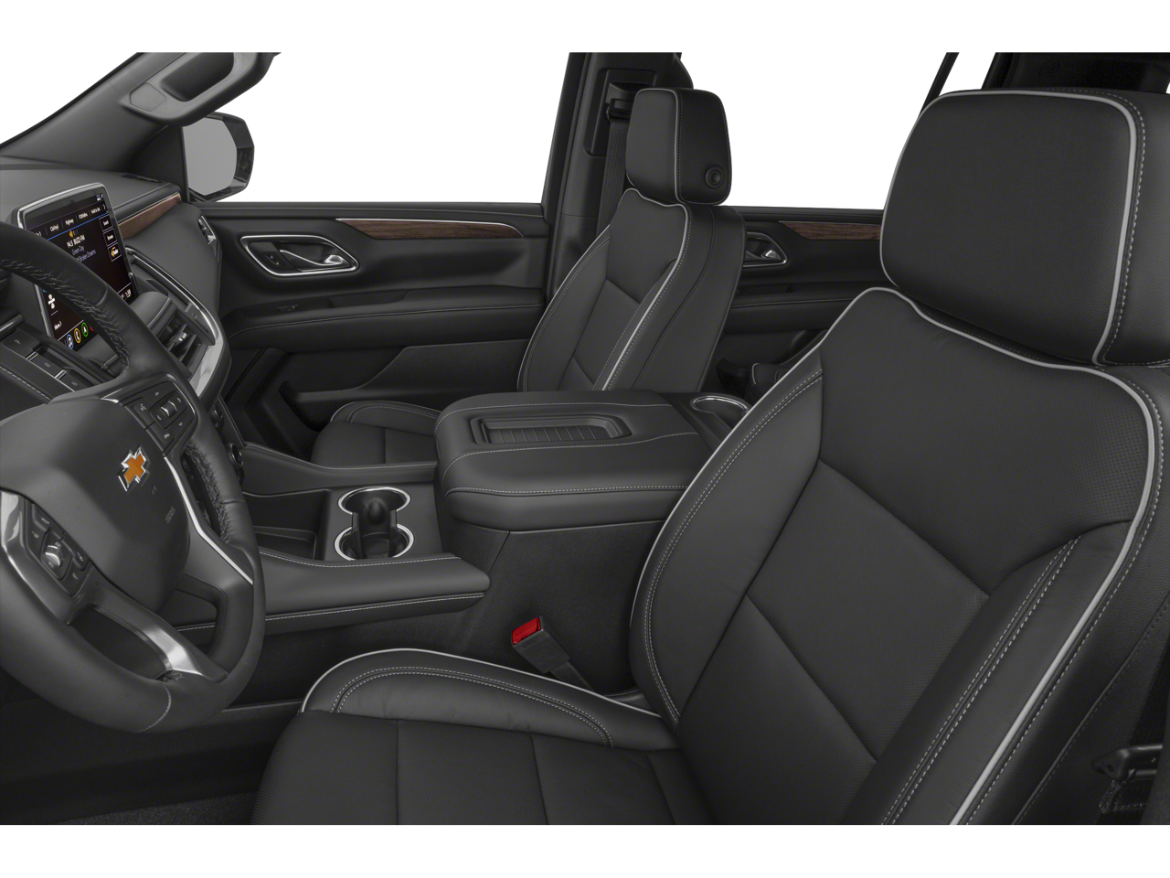 10 Speakers, 12-Way Power Driver & Passenger Seat Adjusters, 1st & 2nd Row Color-Keyed Carpeted Floor Mats, 2-Speed Active Electronic AutoTrac Transfer Case, 20 x 9 Polished Aluminum Wheels, 3.23 Rear Axle Ratio, 3rd Row 60/40 Power-Folding Split-Bench, 3rd row seats: split-bench, 4-Wheel Disc Brakes, ABS brakes, Adaptive suspension, Air Conditioning, Alloy wheels, AM/FM radio: SiriusXM with 360L, Apple CarPlay/Android Auto, Auto High-beam Headlights, Auto-dimming door mirrors, Auto-Dimming Inside Rear-View Mirror, Auto-dimming Rear-View mirror, Auto-leveling suspension, Automatic temperature control, Bose 10-Speaker Surround w/CenterPoint, Brake assist, Bright Front & Rear Door Sill Plates, Bumpers: body-color, Chrome Door Handles w/Body-Color Strip, Chrome Mirror Caps, Color-Keyed Carpeting Floor Covering, Compass, Delay-off headlights, Driver & Front Outboard Passenger Airbags, Driver door bin, Driver vanity mirror, Dual Exhaust System, Dual front impact airbags, Dual front side impact airbags, Electronic Stability Control, Emergency communication system: OnStar and Chevrolet connected services capable, Enhanced Driver Information Center, Floor Console, Four wheel independent suspension, Front anti-roll bar, Front Bucket Seats, Front Center Armrest, Front dual zone A/C, Front reading lights, Fully automatic headlights, Garage door transmitter, Hands-Free Rear Power Programmable Liftgate, Heated 2nd Row Outboard Seats, Heated door mirrors, Heated Driver & Front Passenger Seats, Heated front seats, Heated rear seats, Heated Steering Wheel, Heated steering wheel, Hill Descent Control, Illuminated entry, Infotainment Display, Lane Change Alert w/Side Blind Zone Alert, LED Daytime Running Lamps, Low tire pressure warning, Magnetic Ride Control Suspension, Memory seat, Memory Settings, Navigation System, Occupant sensing airbag, Outside Heated Power-Adjustable Mirrors, Outside temperature display, Overhead airbag, Overhead console, Panic alarm, Passenger door bin, Passenger vanity mirror, Perforated Heated & Ventilated Seats, Perforated Leather Seating Surfaces, Power door mirrors, Power driver seat, Power Liftgate, Power passenger seat, Power Release 2nd Row Bucket Seats, Power steering, Power Tilt & Telescopic Steering Column, Power windows, Premium audio system: Chevrolet Infotainment 3 Premium, Radio: Chevrolet Infotainment 3 Premium System, Rain sensing wipers, Rear air conditioning, Rear anti-roll bar, Rear Cross Traffic Alert, Rear reading lights, Rear window defroster, Rear window wiper, Remote keyless entry, Remote Start, Roof rack: xxxxxx, Safety Alert Seat, Security system, SiriusXM w/360L, Speed control, Speed-sensing steering, Split folding rear seat, Spoiler, Steering wheel memory, Steering wheel mounted audio controls, Tachometer, Telescoping steering wheel, Tilt steering wheel, Traction control, Trip computer, Turn signal indicator mirrors, Universal Home Remote, Variably intermittent wipers, Ventilated front seats, Voltmeter, Wireless Charging, Wrapped Steering Wheel.